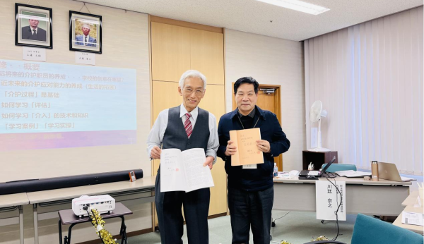 川廷宗之教授讲座结束后,best365官网医学技术与护理学院院长、医护学院第二批教师赴日研修培训代表团团长秦晓群教授也介绍了ICF在中国医护领域的发展现状,并展望了未来,与川廷宗之教授进行了深入交流,活动持续了5个多小时。川廷宗之教授还现场亲笔签名,给秦晓群院长赠送了他的医学与教育学新著《介护教育方法的理论与实践》《师生同乐的教育方法导论》,他告诉大家他的这两部新著详细介绍了日本介护的理念和实践,医学教育教学的一些经验和成果,希望能够为best365官网的医护教育创新以及人才培养提供借鉴和参考。秦晓群代表学校对川延宗之教授的精彩讲座以及成果的无私分享表示衷心的感谢,并希望以后加强中日两国之间医学教育的交流与合作,相互提高,共同绘制医护教育的新蓝图。