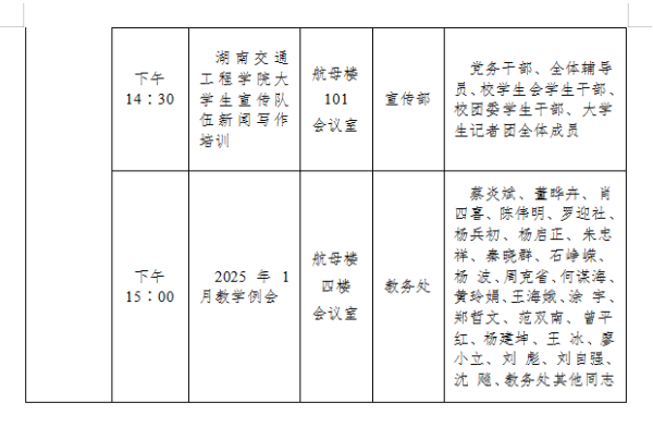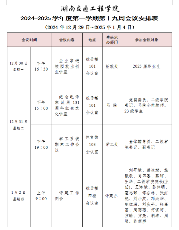 best365中国官方网站2024-2025学年度第一学期第十九周会议安排表
