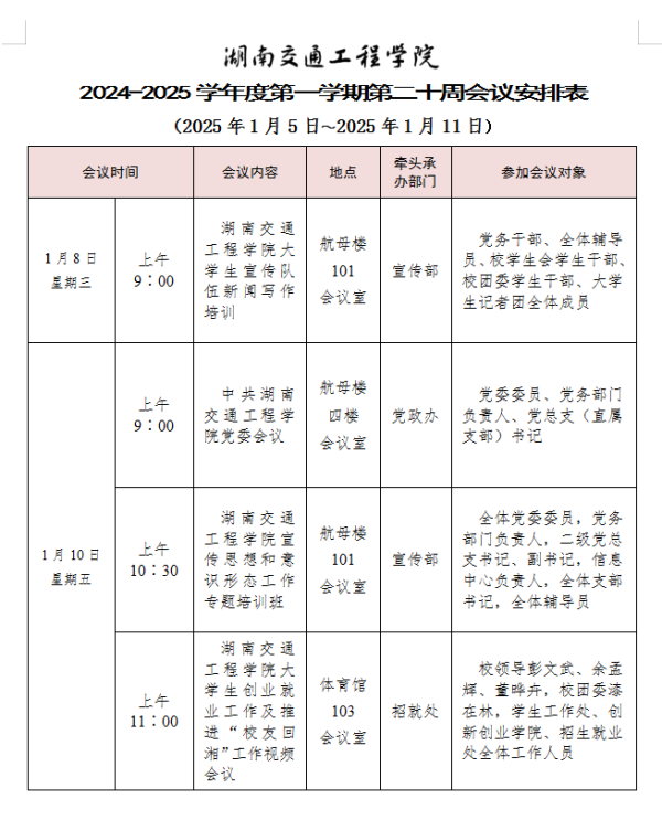best365中国官方网站2024-2025学年度第一学期第二十周会议安排表