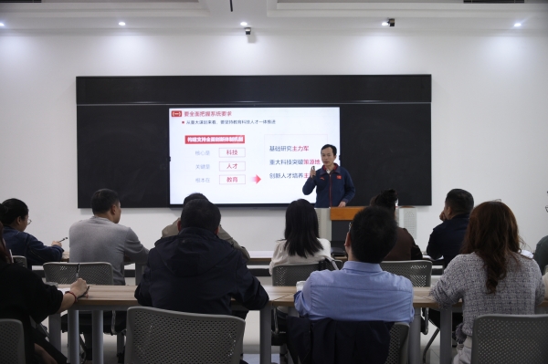 本网讯(通讯员 范睿庭  )10月31日下午,学校党委书记刘文君在航母楼301就“绘就全面深化教育综合改革新蓝图—学习贯彻党的二十届三中全会精神”进行了深入宣讲。此次宣讲会旨在引导全院教职工党员和学生党员把思想和行动统一到党的二十届三中全会精神上来,全面贯彻党的教育方针,以树人为核心,以立德为根本,将思想政治工作贯穿学校办学治校各领域、教育教学各环节、人才培养各方面。