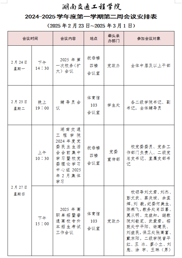 best365中国官方网站2024-2025学年度第二学期第二周会议安排表