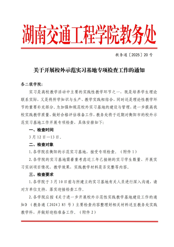 关于开展校外示范实习基地专项检查工作的通知