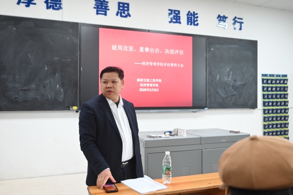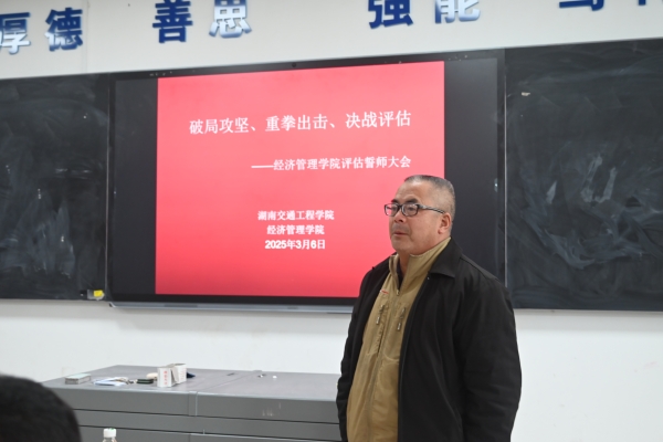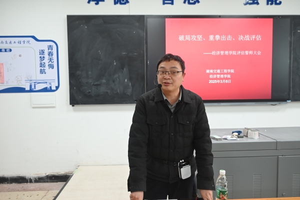 本网讯(通讯员 赵红深 摄影 何心怡3月6日中午,经济管理学院召开决战决胜本科教学工作合格评估冲刺誓师大会。常务副校长彭文武出席会议并讲话,院长朱忠祥、副院长王冰、党总支书记赵荣华、副书记张敬会及学院全体教职工参加会议。朱忠祥主持。