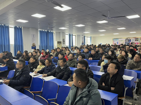 杨兵初院长以《抖擞精神,凝心聚力——坚决打赢复评工作攻坚战》为题作报告,号召全院师生以“星光不问赶路人,时光不负有心人”的精神,全力以赴迎接评估。他指出,距离评估仅剩46天,时间紧、任务重,大家要争分夺秒,与时间赛跑。杨院长对全体师生提出了具体要求:一是强化学习,严格落实评估要求,坚决执行“九个坚持”“四个回归”“四新”“四有”“五金一化”,坚持“四个促进”“三个基本”“两个突出”“一个引导”等评估内涵,确保各项指标全面达标;二是强化课堂管理,全面落实“管教管学”,提升“三率”(到课率、抬头率、前排座位率),营造优良学风,打造高效课堂;三是优化教学方法,推广“翻转课堂”等多元化教学模式,推动数字化教育,提升教学互动性和实效性;四是完善教学档案,确保试卷、毕业设计论文等教学材料齐全、规范,做到有章可循、有据可查。