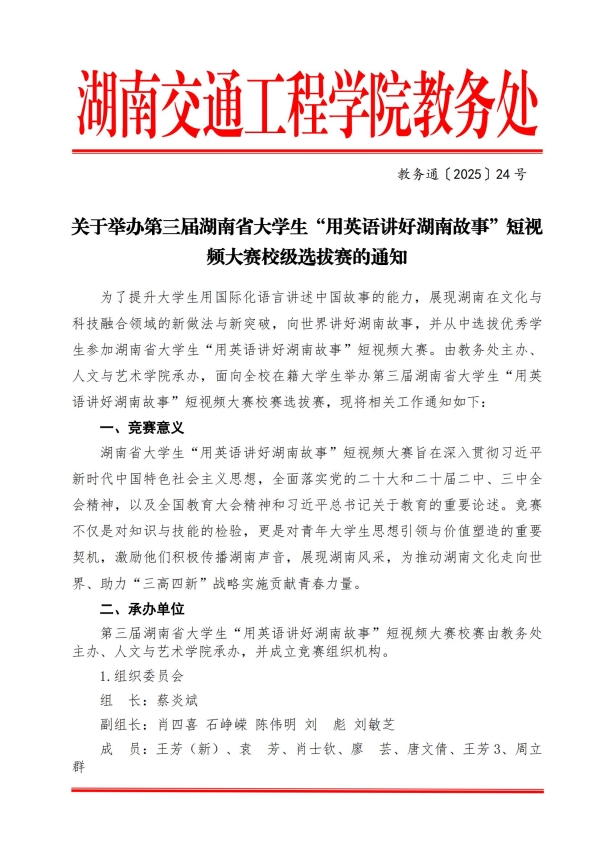 关于举办第三届湖南省大学生“用英语讲好湖南故事”短视频大赛校级选拔赛的通知.pdf