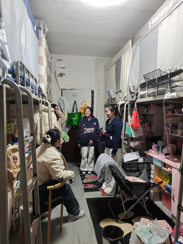 在活动中,导师们分组前往不同宿舍,与学生亲切交谈。她们不仅详细询问了学生们近期的课程学习进度、遇到的学业难题,还关心学生的生活起居,了解宿舍生活中的点滴。有的学生提出在专业课程理解上存在困难,导师们当场给出学习建议,分享学习方法和资源;针对学生在职业规划上的迷茫,老师们结合行业动态和自身经验,为学生答疑解惑,指明方向。在轻松的氛围中,学生们畅所欲言,将心中的困惑和想法毫无保留地与老师交流。