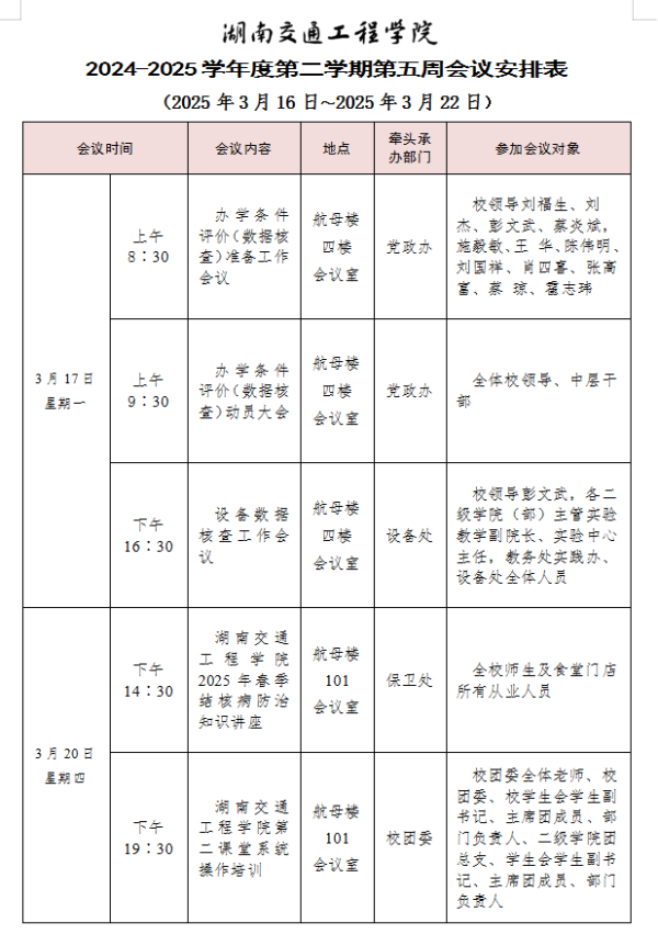 best365中国官方网站2024-2025学年度第二学期第五周会议安排表