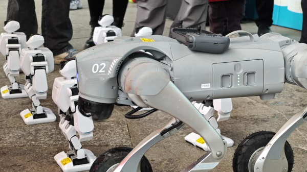 在科技创新展区,学生团队携“智能垃圾分类助手”“模块化太阳能充电器”等12项原创作品亮相。其中,“再生材料3D打印工坊”吸引近百名居民驻足,通过废旧塑料再生为耗材的全流程演示,直观展现环保科技魅力;乐聚人形机器人编队以毫米级同步精度演绎科技舞蹈,宇树四足机械狗灵活翻越障碍,现场观众争相体验平板操控机械狗穿越障碍的乐趣。