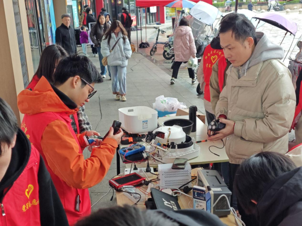 活动现场,党员师生组成“红匠维修队”,设立“一站式家电维修服务站”,为居民提供电饭煲、空调、洗衣机等20余类家电的故障排查与维修服务。通过“登记-诊断-维修-反馈”标准化流程,学生党员引导居民有序参与,教师党员带队开展“初检+复检”双重故障诊断,并增设“透明化操作台”同步讲解家电保养知识。针对复杂故障,团队通过“云端支持系统”实时连线学院实验室,由专家远程指导解决方案,现场利用3D打印机制作非标配件。