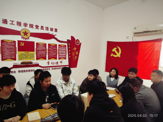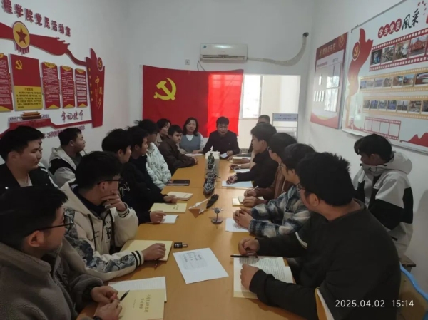 2025年4月2日,机电学院在6栋党员活动室成功开展了“党建引领进宿舍·党的二十大精神润心田——以党员先锋行动助力‘一站式’社区建设”活动。机电学院党总支书记罗斐、党总支副书记辛敬凤、学生党支部书记夏翠云等学院领导与老师,以及6栋栋长朱胜初、学生干事何立权,和20余名学生党员、预备党员、入党积极分子齐聚一堂,共同参与此次活动,推动党建工作与宿舍管理深度融合。
