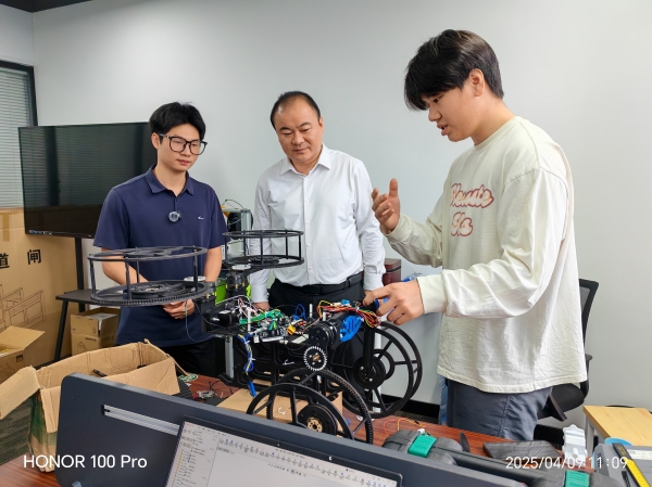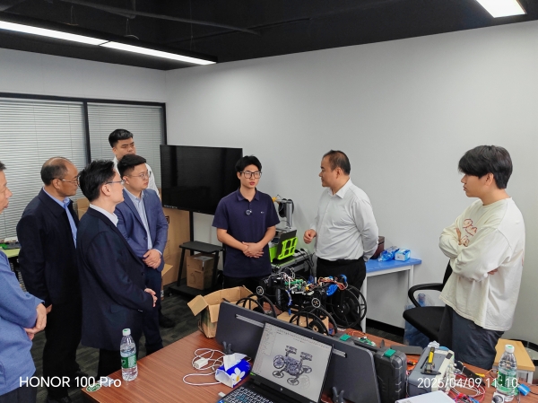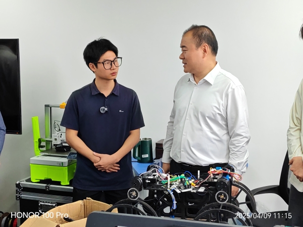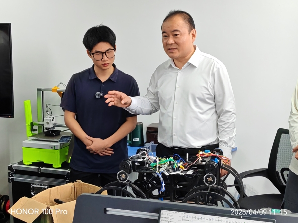 调研期间,朱健重点考察了团队科技创新成果。在认真听取"灵巧蛇影辅助救援勘测智慧机"和"三栖救援巡检机器人"两款创新作品的专题汇报后,朱健对作品的创新性和实用性给予高度评价,充分肯定了best365官网学子在科技创新方面展现出的专业素养和创造才能。朱健指出,best365中国官方网站学生展现出新时代青年特有的创新活力和实践能力。他勉励同学们要持续保持创新热情,将创新创业项目作为长期事业来发展,把专业知识转化为实际应用,为社会进步贡献智慧力量。