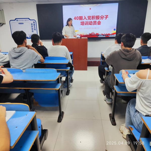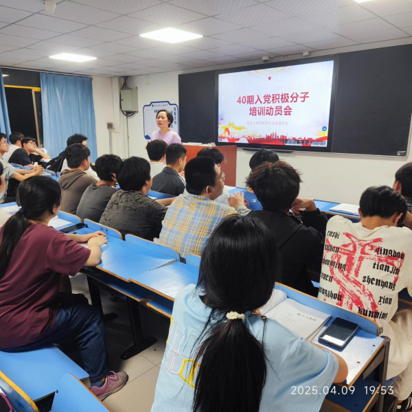 为了深入学习贯彻习近平新时代中国特色社会主义思想和党的二十届三中全会精神,全面贯彻落实《中国共产党普通高等学校基层组织工作条例》,切实加强入党积极分子的思想政治理论教育,4月9日下午,机电工程学院在410教室隆重举行了第40期入党积极分子培训启动仪式。