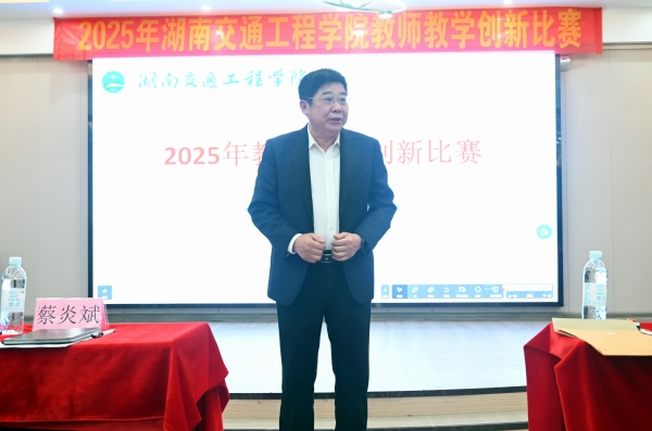 蔡炎斌在致辞中强调,学校高度重视教育教学改革与教师发展工作,提升教学质量是学校高质量发展的核心任务。大赛为教师提供展示和锤炼技能的平台,推动教学发展,教师可通过教学创新探索高效实用的方法,培育高素质人才。