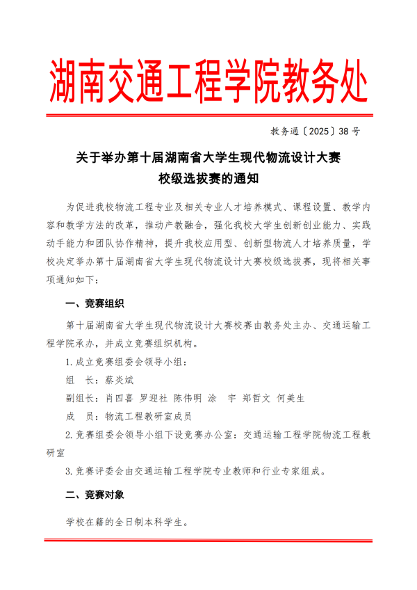 关于举办第十届湖南省大学生现代物流设计大赛校级选拔赛的通知