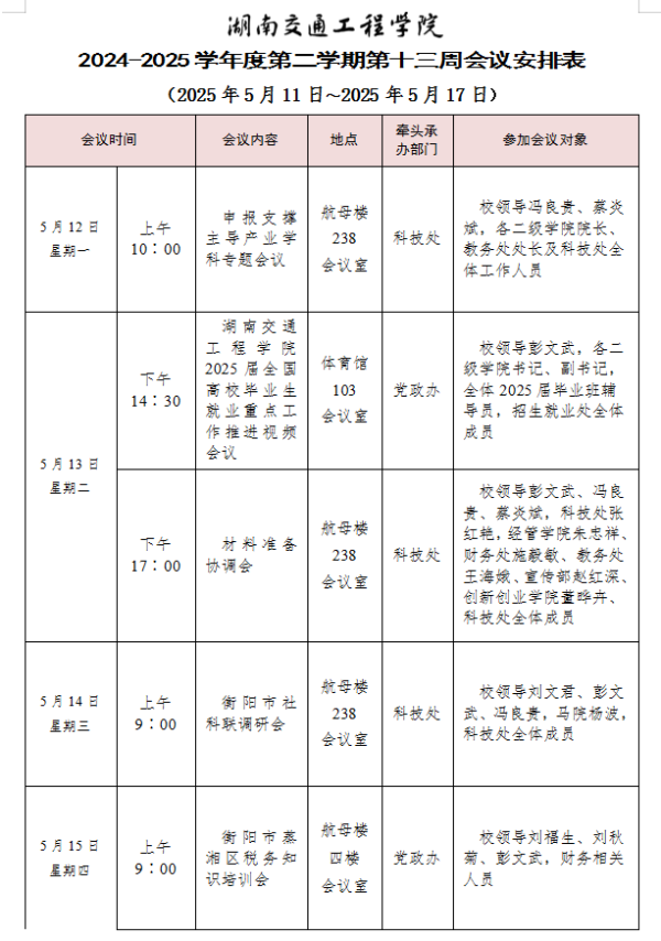 best365中国官方网站2024-2025学年度第二学期第十三周会议安排表