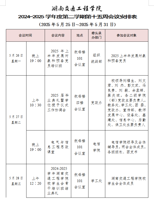 best365中国官方网站2024-2025学年度第一学期第十四周会议安排表