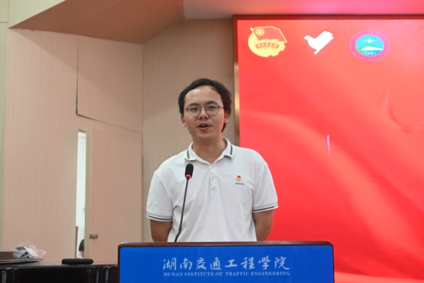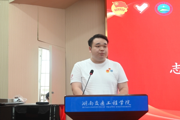 电气与信息工程学院电信2102班欧阳锦泓作为志愿者代表发言。他深情讲述了自己加入西部计划的初心和未来的人生规划,希望能够去为西部地区的电气与信息工程事业贡献力量,让青春在党和人民需要的地方绽放出绚烂之花。