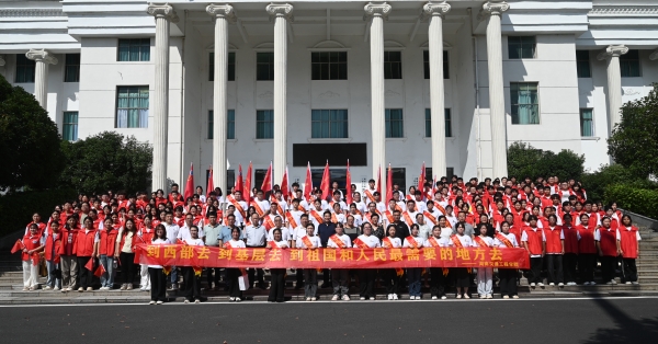 本网讯(通讯员 赵红深  摄影 李水华 邓翔)为深入学习贯彻习近平总书记关于青年工作的重要思想,引领西部计划志愿者立足新征程,肩负新使命,展现新作为,主动融入发展大局,积极投身乡村振兴,扎根基层,奉献社会,6月17日下午,学校在航母楼101会议室举行2025年大学生志愿服务西部计划志愿者出征仪式。2025年新招募西部计划志愿者分别赴贵州、四川、湖北、广西、新疆维吾尔自治区、新疆生产建设兵团、西藏、云南、内蒙古、黑龙江、吉林等12个省份基层一线,投身科技创新、乡村振兴、绿色发展、社会服务、卫国戍边等方面志愿服务,在为进一步全面深化改革、推进中国式现代化挺膺担当中展现青春作为、彰显青春风采、贡献青春力量。
