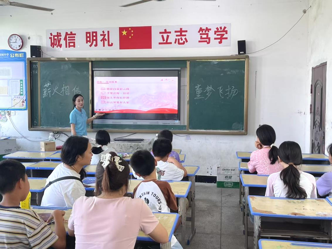 ( 通讯员:危乐辉 刘佳玲 龚萱 )盛夏时节,樟树乡小学的校园里,翠竹摇曳,绿意盎然,阳光透过树叶洒下斑驳光影。正是在这充满生机的环境中,7月9日,交通运输工程学院“湘交筑梦,七彩领航”志愿服务团队带着满腔热忱,开启了一场别开生面的思想引领与文化传承之旅。