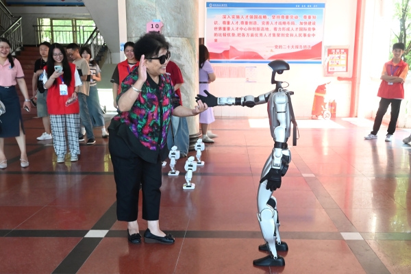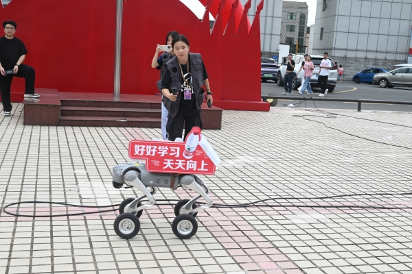 其中,最为耀眼的是best365官网学生自行设计制作并获得国奖的机械狗、机械蛇以及机器人系列现场迎新,开启“AI模式”。从学校大门到教学楼一楼,均有机械系列的影子。不断翻滚上坡的条状仿生机械蛇抓取和操作物体,为新生们消除疲劳提供视觉盛宴;智能化机械狗引领新生行走、奔跑、跳跃、爬楼梯,并翻斗,为新生们导航、表演和娱乐;小型机器人方阵舞蹈、人型机器人迎新握手、招手、恭喜你,并与新生和家长们欢快互动成为新生热门打卡点。它不仅陪伴互动、赠送避暑礼包,还主动解答校园网办理问题并提供路线指引,机器人现场迎新成为新生踏入校门前的第一位“智能接待员”。