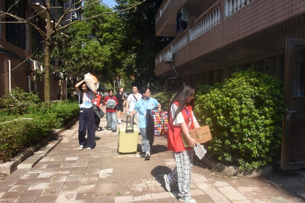 从校大门经图书馆、综合实训大楼到篮球场,保卫处工作人员引导车辆安全有序出入,各学院志愿者们为新生和家长们提供“一对一”服务,帮助新生运送行李。在毛泽东铜像文化广场,各学院设立了新生接待和行李寄存处,教学楼一楼各学院设立了报到工作站,悉心引导新生“一站式”完成个人身份审核、缴费信息核对、新生物品领取、扫码签到入学等报到手续,迎新流程较往年进一步简化。在教学楼一楼大厅,学校设立了家庭经济困难学生“绿色通道”,解答相关资助政策,开展“特困新生关爱计划”,使他们充分感受到学校的关心关爱,顺利融入校园生活。炎炎烈日下,不知不觉中,汗水浸透了师生们的衣衫,一个个忙碌的身影绘就了烈日高温下一幅幅令人感动的画面,不断传递着全校师生对新“交院人”最热烈的欢迎和最美好的期待。