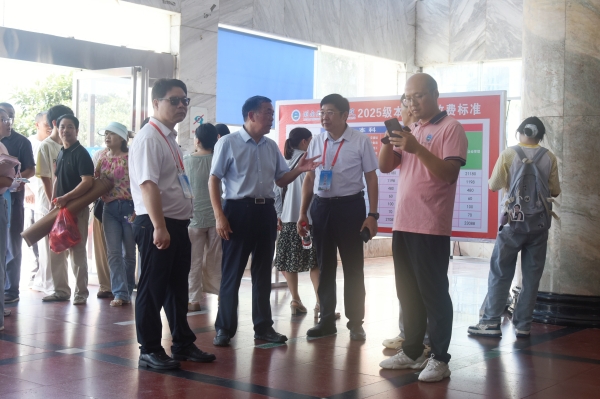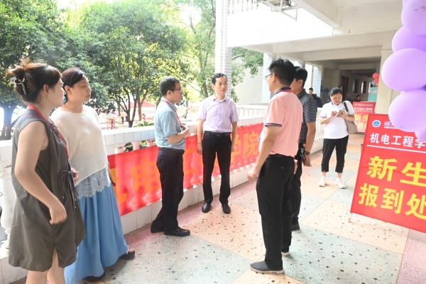 董事长刘福生、党委书记刘文君、执行校长刘杰、常务副校长彭文武、纪委书记刘毅、副校长蔡炎赋、校董事董晔卉及相关职能部门负责人先后来到迎新工作站、学生公寓、各二级学院报到点等走访和指导迎新工作,与新生及家长热情交流、合影留念,亲切慰问工作人员和志愿者。刘福生对新同学表示热烈欢迎,仔细询问他们的入学感受,勉励大家尽快融入大学生活,同时对各学院、各部门高效有序、温馨周到的迎新举措表示肯定,要求统筹安排好入学教育、体检、军训等工作,特别要做好家庭经济困难学生的关心关爱与帮扶工作。