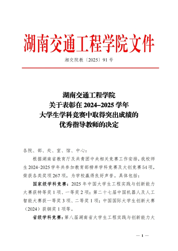关于表彰在 2024-2025 学年大学生学科竞赛中取得突出成绩的优秀指导教师的决定