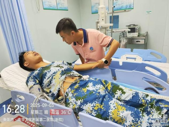 在机电工程学院,党总支副书记辛敬凤化身“暖心裁缝”,在忙碌的工作间隙亲手为学生们缝补破损的军训服,一针一线织就浓浓师生情。辅导员曹亮明则为训练场上的同学们送来了清甜可口的西瓜,为紧张的军训带去了一份夏末的舒爽与甘甜。更令人动容的是,辅导员何立权在了解到学生胡晋豪因身体缺钾突然出现不适后,第一时间奔赴现场将其紧急送医,并全程陪伴左右,用果断的行动和温暖的守护挽回了学生的健康安全,默默践行着“学生之事无小事”的深刻承诺。