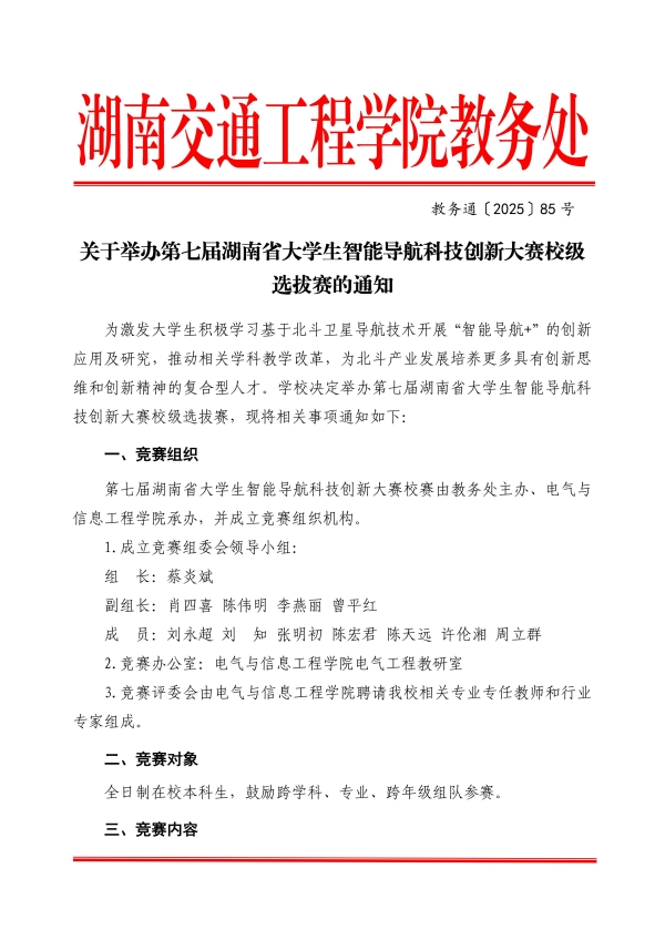 关于举办第七届湖南省大学生智能导航科技创新大赛校级选拔赛的通知