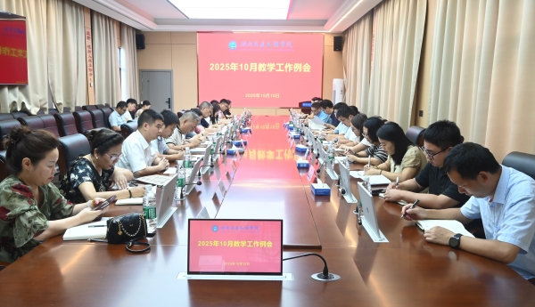 本网讯(通讯员 肖灿)10月10日下午,学校在航母楼四楼会议室召开2025年10月份教学工作例会。执行校长刘杰、副校长蔡炎斌,各二级院(部)正副院长(主任)、学工处负责人、质评中心负责人、科技处负责人、教务处全体人员出席会议,会议由教务处处长肖四喜主持。