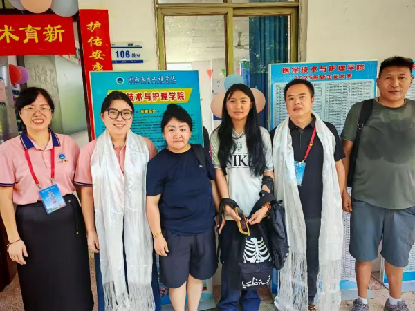 从雪域高原到湘水之畔,千里迢迢的路程没有阻挡她求学的脚步,却让这份来之不易的相遇更显珍贵。她的到来,受到了学校领导和老师们的高度重视。报到当天,医护学院邓丽书记特意与她的父母深入交流,细致了解她的成长背景和家庭情况,同时也向家长详细介绍了学校的培养计划与关怀政策。事无巨细的叮咛,真诚温暖的沟通,让这位跨越山海而来的女孩和她的家人,真切感受到了学校的用心与重视。