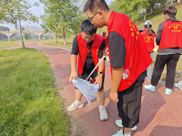 在清理过程中,志愿者们充分发挥医护专业特有的细致与耐心,将“严谨务实、精益求精”的职业素养融入护河行动。从体积较大的白色塑料袋、废弃纸箱,到细小的烟蒂、碎纸屑,每一件垃圾都被精准夹取、妥善处理。经过数小时的清理,原本零星散落垃圾的河岸重新焕发生机。