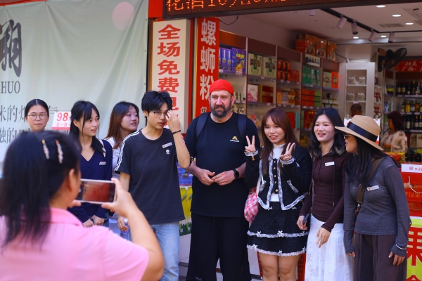 在阳朔欧美达英文书院Jason,Andrew,Kayleigh等外教的带颁下,同学们化身文化交流使者,探访西街,以“感受地球村英语文化”为主题,积极与外国友人展开交流互动,用语言搭建起跨文化沟通的桥梁。同学们通过细致观察西街的英语文化元素,深度挖掘街头英文标识、商户双语交流等鲜活案例,并结合精心设计的社会实践问卷调查,全方位记录西街英语文化的独特魅力。将课堂上积累的语法知识、交际技巧灵活运用于实际对话,从问路点餐到探讨文化差异,每一次开口都是对语言能力的淬炼。“学用结合”的创新模式,不仅为同学们提供了沉浸式语言实践平台,更让英语学习从书本走向生活,切实提升了语言应用能力与跨文化交际素养。