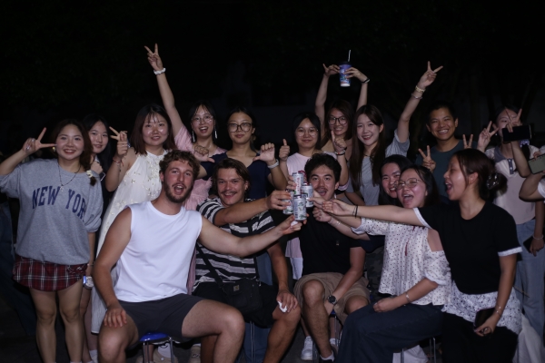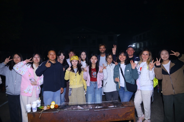 外教给同学们的任务是去西街邀请一些外国人参加大家的Party。夜幕降临,“感恩相遇,深情告别”主题烧烤晚会在欢声笑语中拉开帷幕。随着袅袅的柴烟升起,同学们将食材清洗干净、将食材串成串、调配酱料汁……烧烤现场热火朝天,同学们也感受到了一饭一汤来之不易,在自己的动手实践中更懂得感恩父母。在火光映照下,中外友人举杯共庆,在美食与歌声中互道珍重。这场实践不仅让同学们实现了英语“学以致用”,更在跨文化交流中收获自信,为此次阳朔之行画上圆满句号。