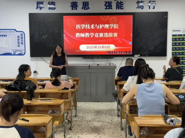 为进一步提升教师教学能力与专业素养,推动教育教学质量提质增效,10月9日,医学技术与护理学院教师教学竞赛选拔赛在教学楼110教室成功举行。学院副院长廖小立、党总支副书记兼团总支书记刘建军出席活动,各教研室代表担任评委,部分教师到场观摩学习。