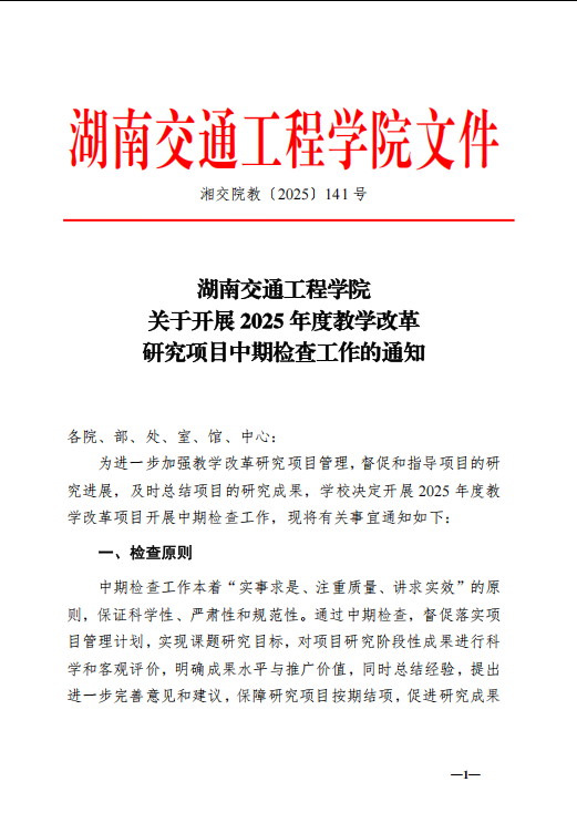 141.湘交院教〔2025〕141号(关于开展2025年度教学改革研究项目中期检查工作的通知).pdf