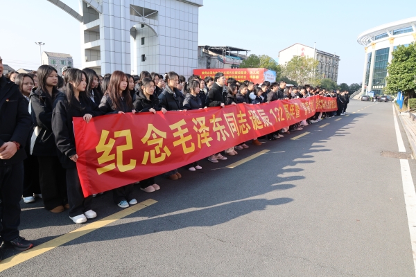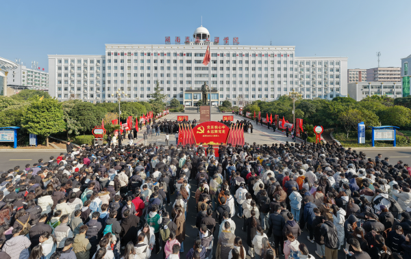 上午10时18分,在庄严肃穆的毛泽东铜像广场,全体人员肃立,鞠躬默哀,追忆伟大领袖毛泽东。国旗班学生党员代表向毛泽东铜像敬献花篮,向毛泽东及其为革命牺牲的6位亲人致以崇高的敬意。党委委员、学工部部长赵荣华带领300多名大学生党员高举右拳、面向党旗,庄严宣誓成为光荣的中国共产党党员。1200多名入党积极分子观摩宣誓并开展拉歌活动。