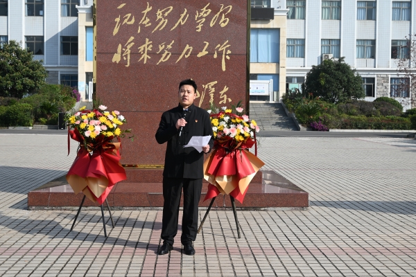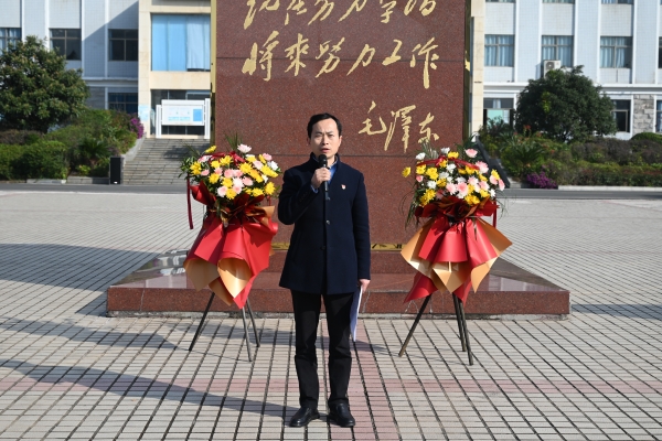 本网讯(通讯员 赵红深 李水华 摄影 邓翔 胡子婷 大学生记者团张明煜 李颖琪)有一种精神,穿越历史的云烟,仍光芒万丈;有一种怀念,历经时代的风雨,仍醇厚弥久。为进一步增强大学生党员党性意识,激发广大青年学生在实现中华民族伟大复兴中国梦的生动实践中放飞青春梦想,学校于12月26日上午组织全校学生党员和入党积极份子在学校毛泽东铜像广场举行纪念毛泽东同志诞辰132周年敬献花篮暨“青春向党”大学生集体入党宣誓”活动。党委书记刘文君出席活动并致辞,副校长蔡炎斌主持活动。