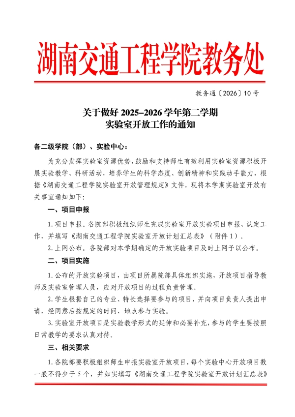 关于做好2025-2026学年第二学期实验室开放工作的通知