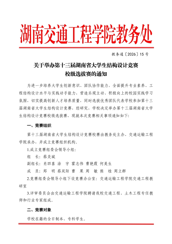 关于举办第十三届湖南省大学生结构设计竞赛校级选拔赛的通知