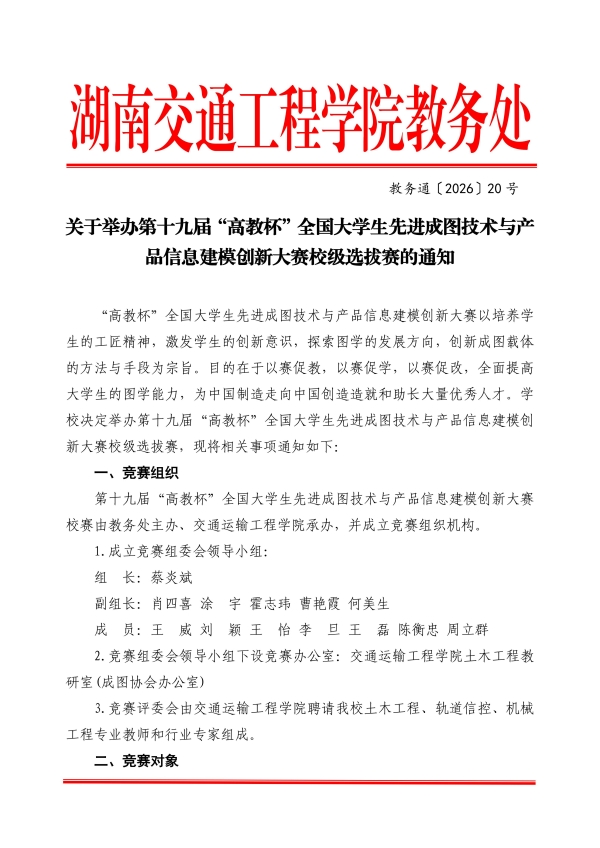 关于举办第十九届“高教杯”全国大学生先进成图技术与产品信息建模创新大赛校级选拔赛的通知