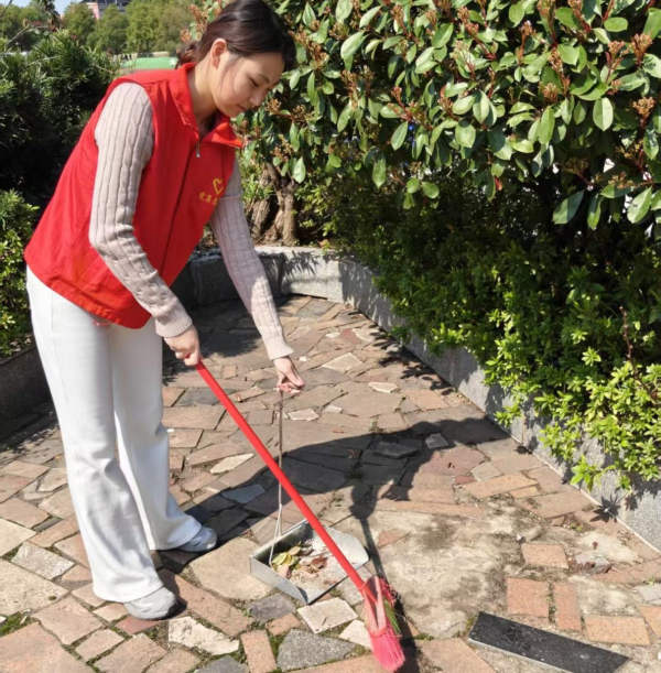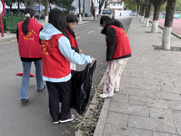 早上八点,身着红马甲的志愿者们准时集结。 刘仁秦老师前期完成了细致的人员分工与物资调配,将队伍分为环境维护组和引导服务组;刘建军副书记则驻守现场,逐一巡查并鼓励大家:“雷锋精神的本质就是奉献与服务,今天我们就做考生身边的‘活雷锋’。”随后,环境维护组迅速投入考场外围的清扫工作,保持公共区域整洁;引导服务组则分布在校园各路口,为陆续到来的考生提供路线指引。