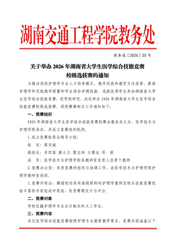 关于举办2026年湖南省大学生医学综合技能竞赛校级选拔赛的通知