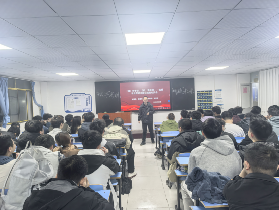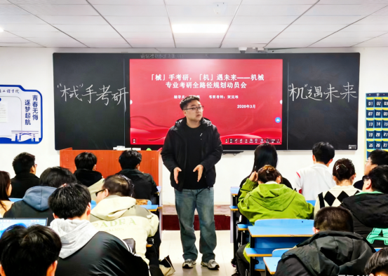 为强化学风建设,精准服务学生升学需求,助力机械类专业学子明确备考方向,2026年3月29日,机电工程学院面向2023级机械设计制造及其自动化专业全体本科生,举办了“‘械’手考研,‘研’途未来”考研全路径规划专题动员会。活动由学院辅导员潘登峰主持,并邀请机械设计制造及其自动化专业教研室主任贺沅玮副教授担任主讲。