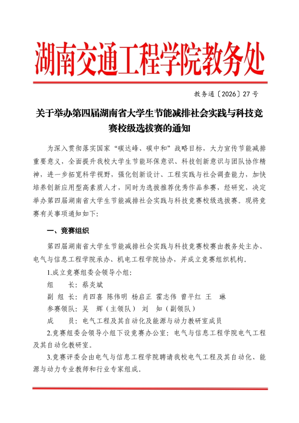 关于举办第四届湖南省大学生节能减排社会实践与科技竞赛校级选拔赛的通知