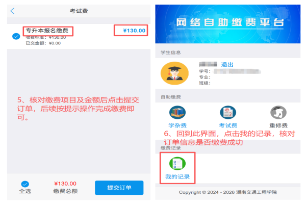 根据湖南省教育厅及省考试院相关文件精神,按照湖南省财政厅、发改委有关规定缴纳考生报名费,收费标准为130元/人次,已在2026年免试生综合测试时缴费的考生不需重复缴费。具体缴费操作流程(见附件二)。已缴费的考生报名费一旦缴纳,概不能退。