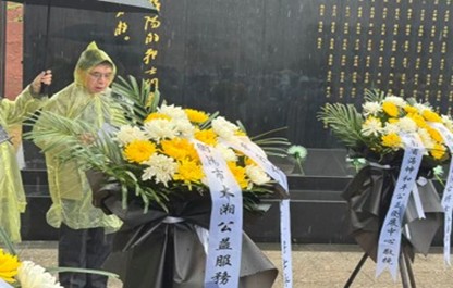 发言结束后,参与活动的师生代表依次缓步上前,将手中洁白的菊花轻轻放置在纪念台之上。一朵朵素菊承载着跨越时空的追思与敬仰,每一次俯身敬献,都是对历史的铭记、对英雄的致敬。