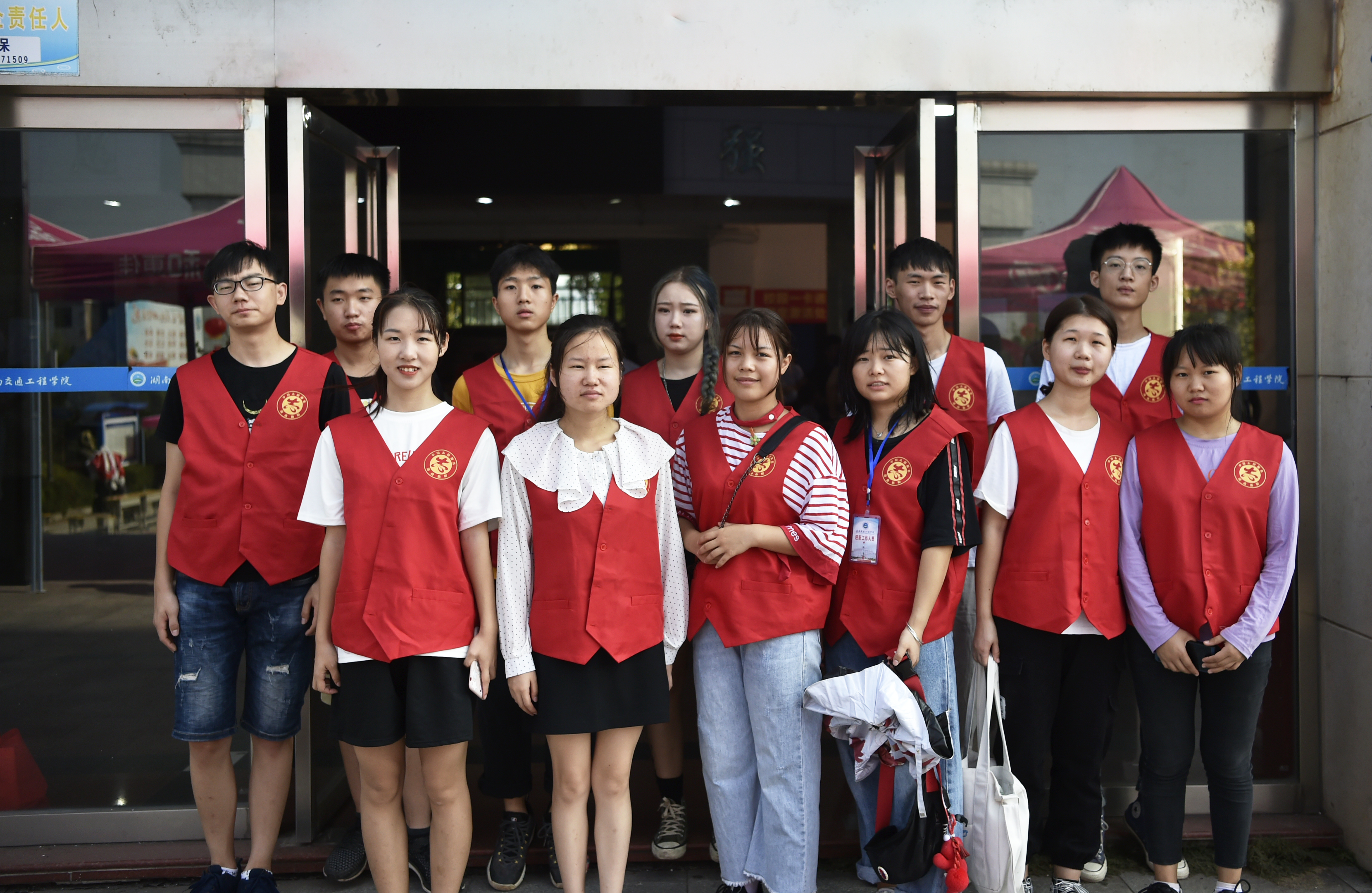 统一穿红色背心的志愿者们热情周到的服务,受到新生及家长的一致好评。