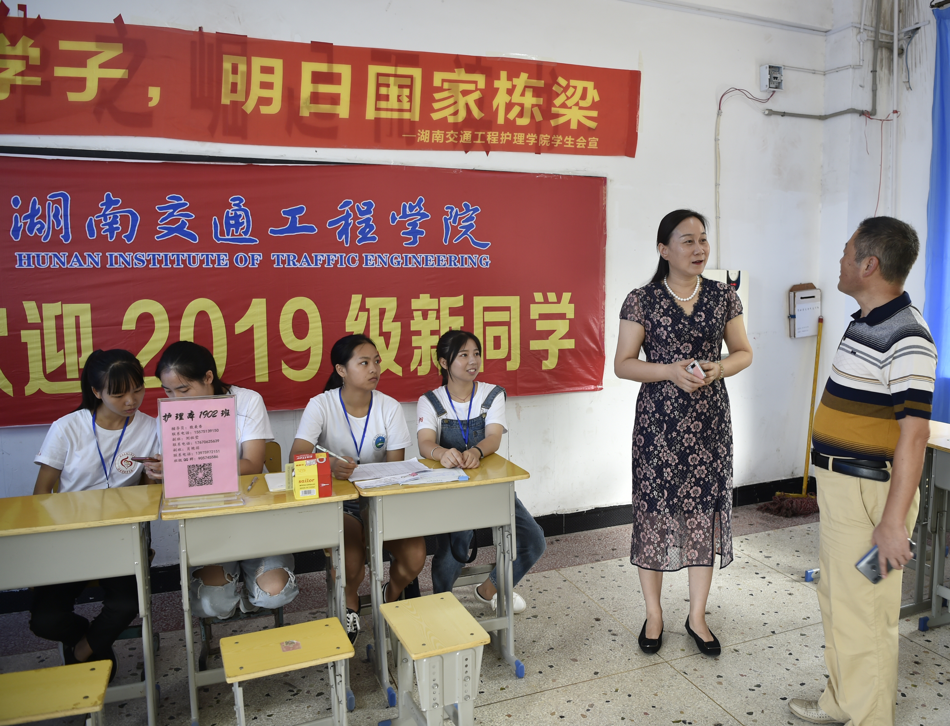 学校在衡阳高铁东站、衡阳火车站等五个车站设立迎新站点,志愿者们举着迎新牌,等候、迎接来自全国各地的莘莘学子。