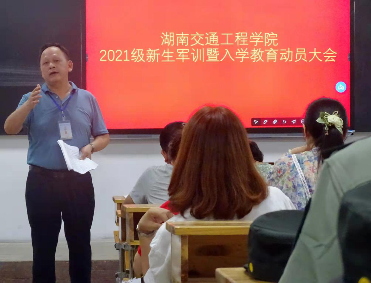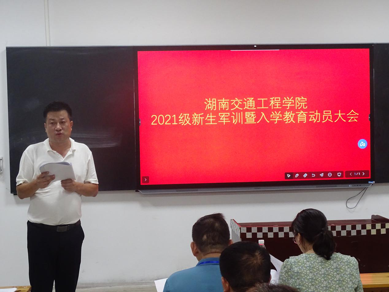 9月2日下午七点,教学楼201教室智能黑板上红色背景上,“best365中国官方网站2021级新生军训暨入学教育动员大会”金黄色大幅会标衬托出庄严肃目的氛围。52名“老兵连”教官整齐划一座在教室后排,全体专兼职辅导员和各学院总支书记、副书记和学生工作处工作人员出席动员大会,学生工作处刘海滨副处长主持大会。
